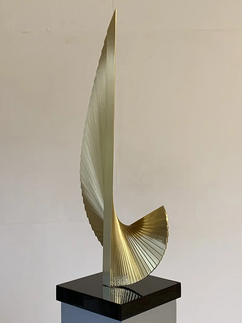 Thomas follows a passion for creating form based abstract sculpture which responds to aesthetics and fractals within nature. Exploring such principles as Fibonacci led to an understanding that the stunningly beautiful yet often simple laws that nature follow, result in what could most closely be described as perfection within our environment and are synonymous with aesthetic beauty, balance and perfection.Thomas graduated from the Norwich School of Art in 2005 and has since set up his practice as a sculptor in Norwich. Thomas works primarily to commission, undertaking projects for private, corporate and public clients both in the UK and to a increasingly international audience.The style he has developed continues a strong tradition of depicting nature and fractals in art and is influenced by sculptors such as Gabo, Brancusi, Arp, Moore and Hepworth. Thomas worked freelance as assistant to Angela Connor FRBS after graduating university and was delighted to later discover that Angela trained in the St Ives studio of Dame Barbara Hapworth and assisted on Hepworth’s ‘Single Form’ for the UN.Over the past 10 years, Thomas has found his talents in demand, working often with architects, design firms and art consultancies worldwide. The geometric nature of his designs means that much of his work is easily customised to meet the bespoke needs of many designers and their clients. Offering the opportunity to re-scale size or change colour, finish or materials.Recent commissions of note that Thomas has undertaken include a poolside feature for the new Crown Sydney hotel, two works for the deck of the new ‘Spirit Of Adventure’ cruise liner, a large bronze for the Crown Estate in St James’s London, a three metre high bronze sculpture at Austin Road Station – Hong Kong, and the design of a large scale contemporary sundial for Chelmer Housing Partnership, Essex.