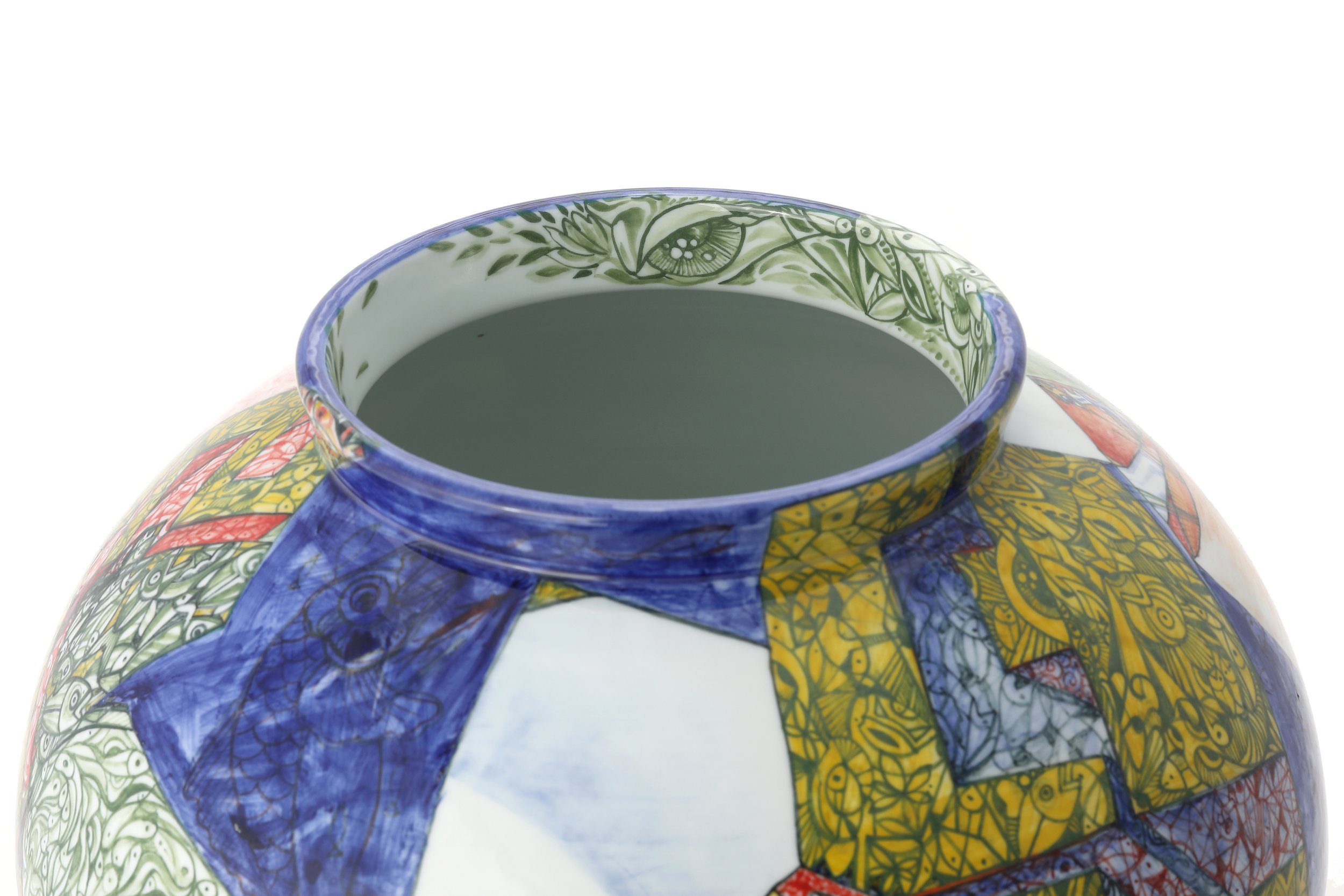 Over time, modern ceramics have evolved creatively and philosophically, transcending the traditional boundaries of form and function. Lee's work is a testament to this evolution, combining interpretation, expansion, and reexamination of the medium with an improvisational approach, Lee explores the interplay of lines to create abstract compositions, often incorporating eye and fish motifs into his ceramics. These elements come together in asymmetrical forms, showcasing a new method of visual expression that reflects the artist's emotional depth. Through his work, Lee not only pushes the boundaries of ceramic art, but also conveys personal and intimate stories through innovative and evocative designs.Lee Chang-Soo | London Night Scenery (Detail)