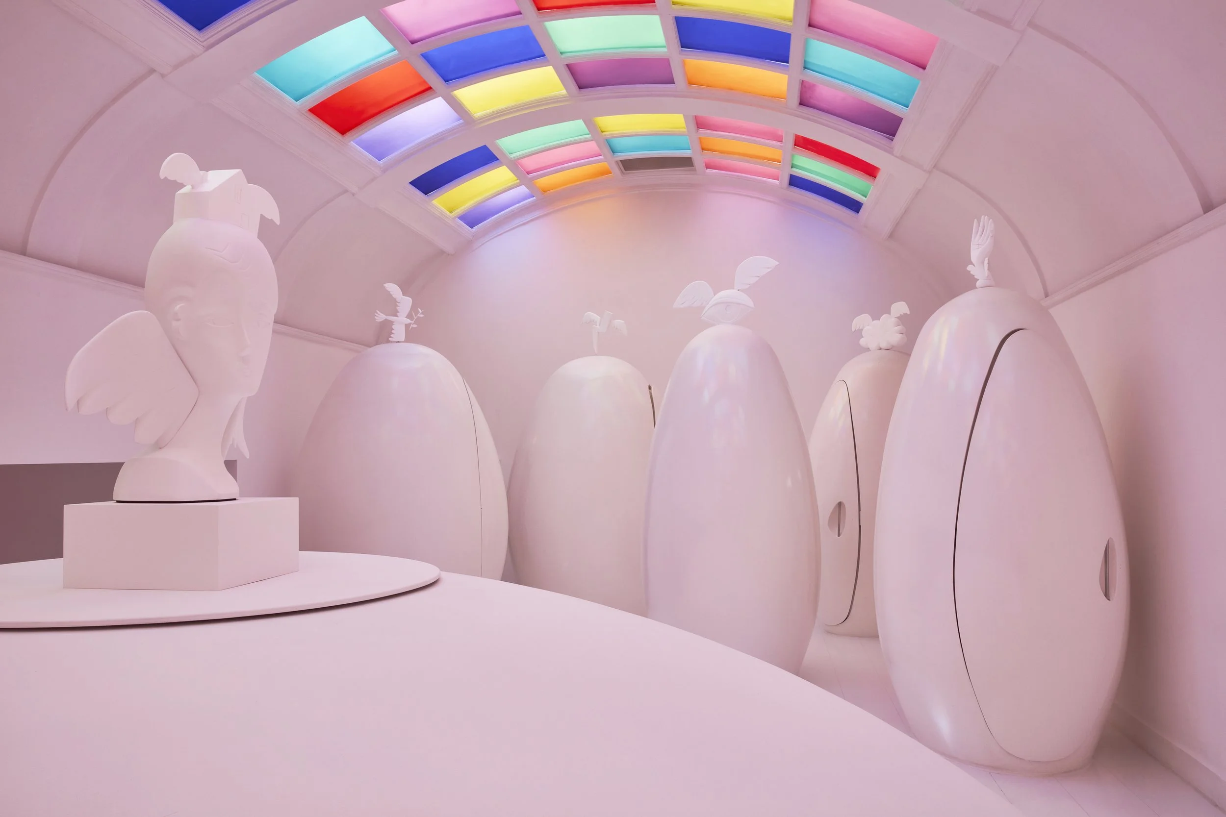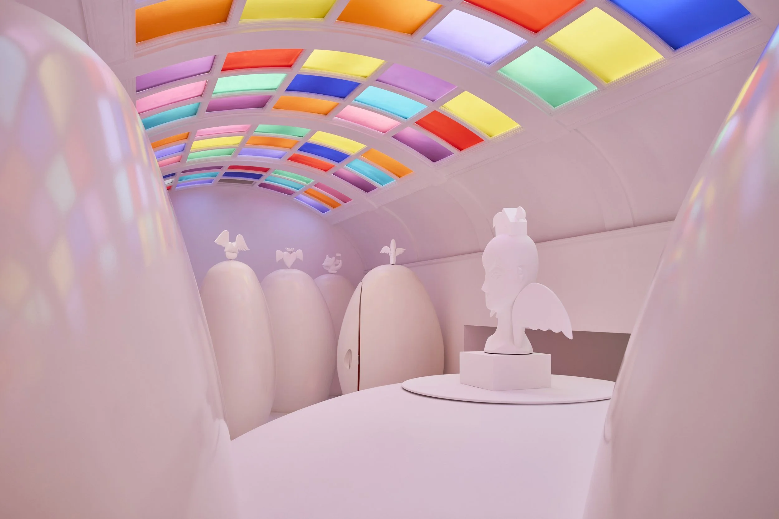 For sketch London, we curated and produced Home of the Braves, a bold, narrative-driven installation conceived in collaboration with visionary artist and designer Jean-Charles de Castelbajac. We led the curatorial direction, coordinated the artistic partnership with emerging fashion designer Ida Immendorff, and oversaw the creative development and installation across the three iconic alcoves of the Gallery. Our role included the alignment of artistic vision with sketch’s architectural and cultural environment, partnership management, production oversight, and coordination with material collaborators such as Mylands, Doublet and CC-Tapis. Launched during London Design Festival in September 2024, the installation became one of the season’s standout cultural moments, reinforcing sketch’s position as a destination for progressive art and design.